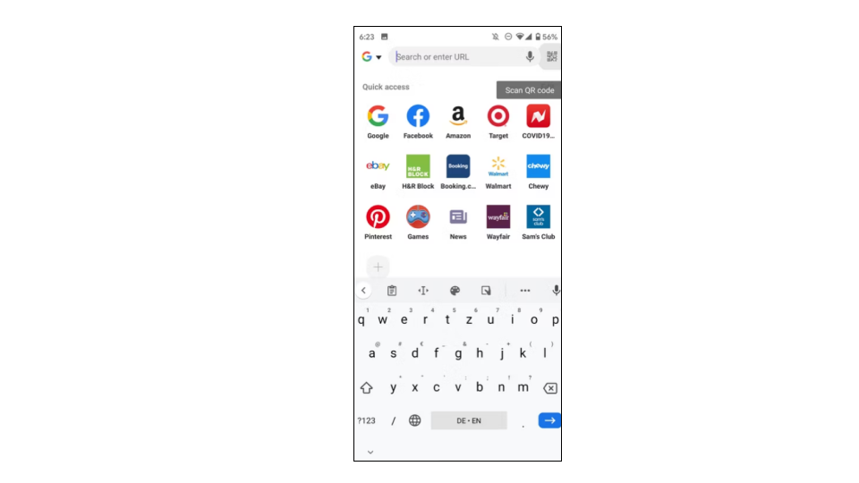 - The next time you use the address bar, find the QR Code scanner button on the right