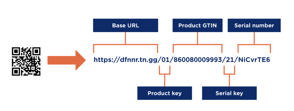 This link contains your unique GS1 product identifiers and a domain of your choice: homepage, product page, Digital Product Passports (DPP), or any other resources you want users to access.
