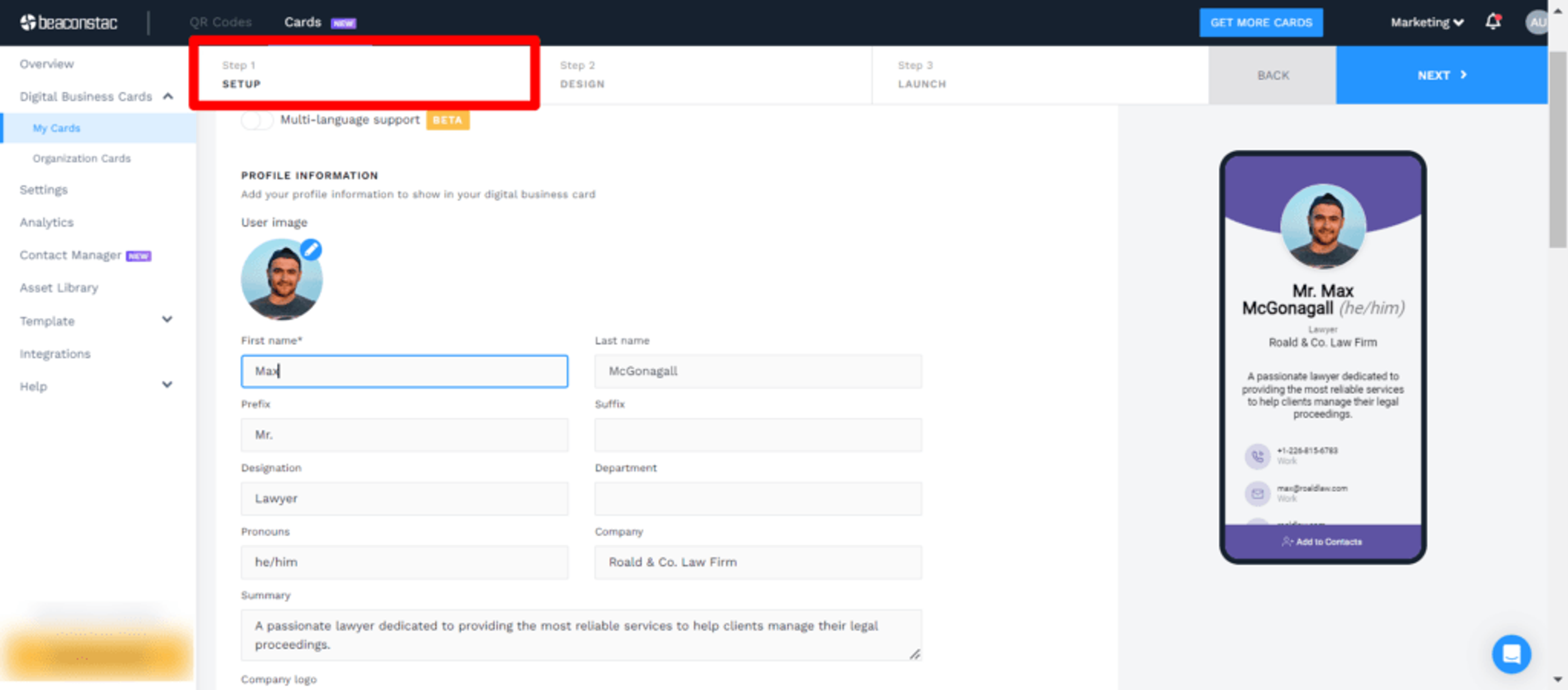 Once you customize the design of your digital business card, click the LAUNCH tab.