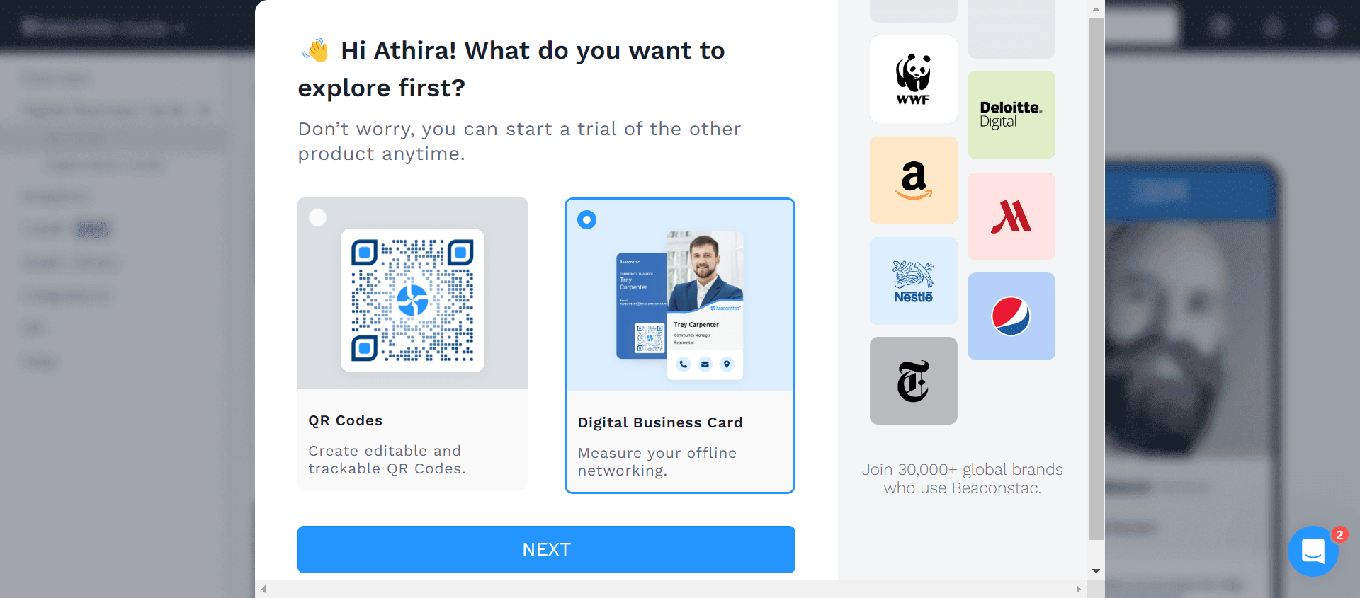 Sign-up for a free plan to create digital business cards. No credit card required.
