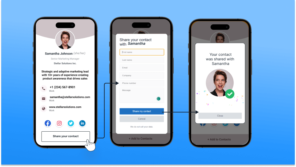 Digital business cards do more than just share your contact information. They also serve as lead collection tools—made possible by a functionality called two-way contact sharing.