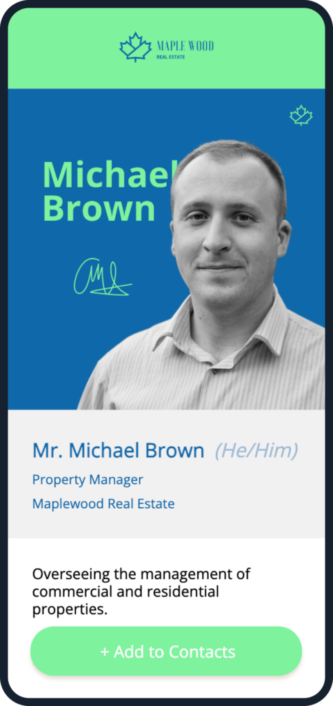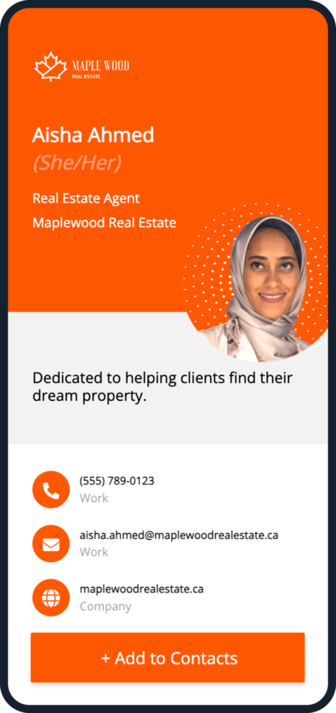 Real estate moves fast. Listings change, brokerages shift, and phone numbers get updated. With a paper card, you’d need to reprint every time something changes. A digital business card, however, can be updated in real time, and everyone who has your card sees the latest version automatically.