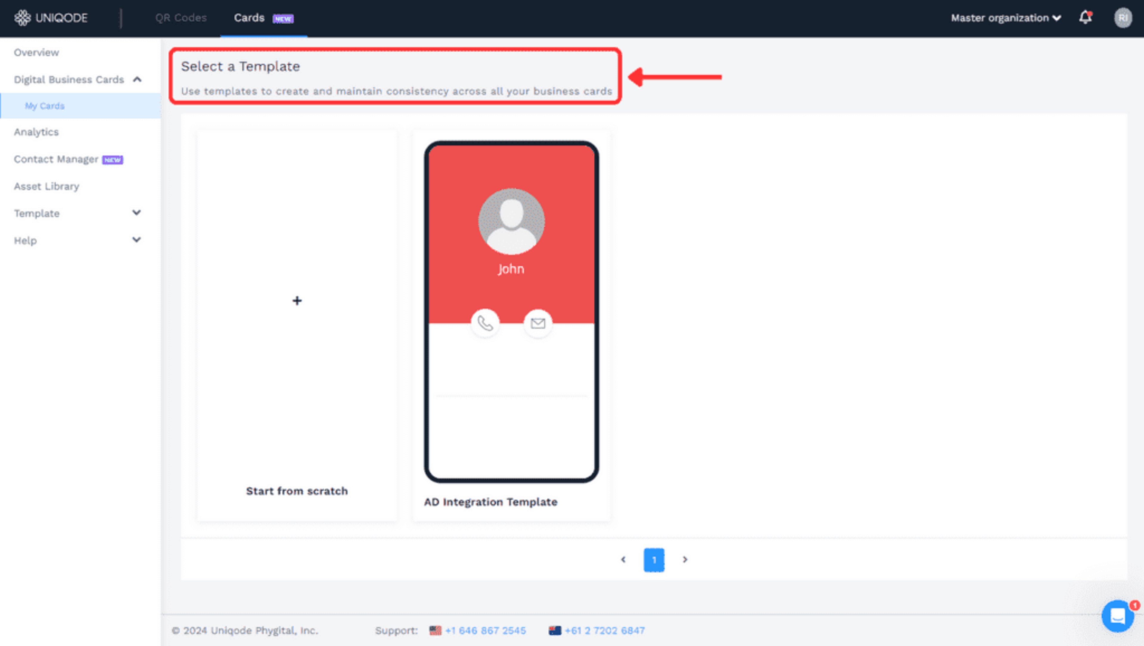 If your organization’s Uniqode account has already created templates, they will appear on the “Select a Template” page for you to choose from.