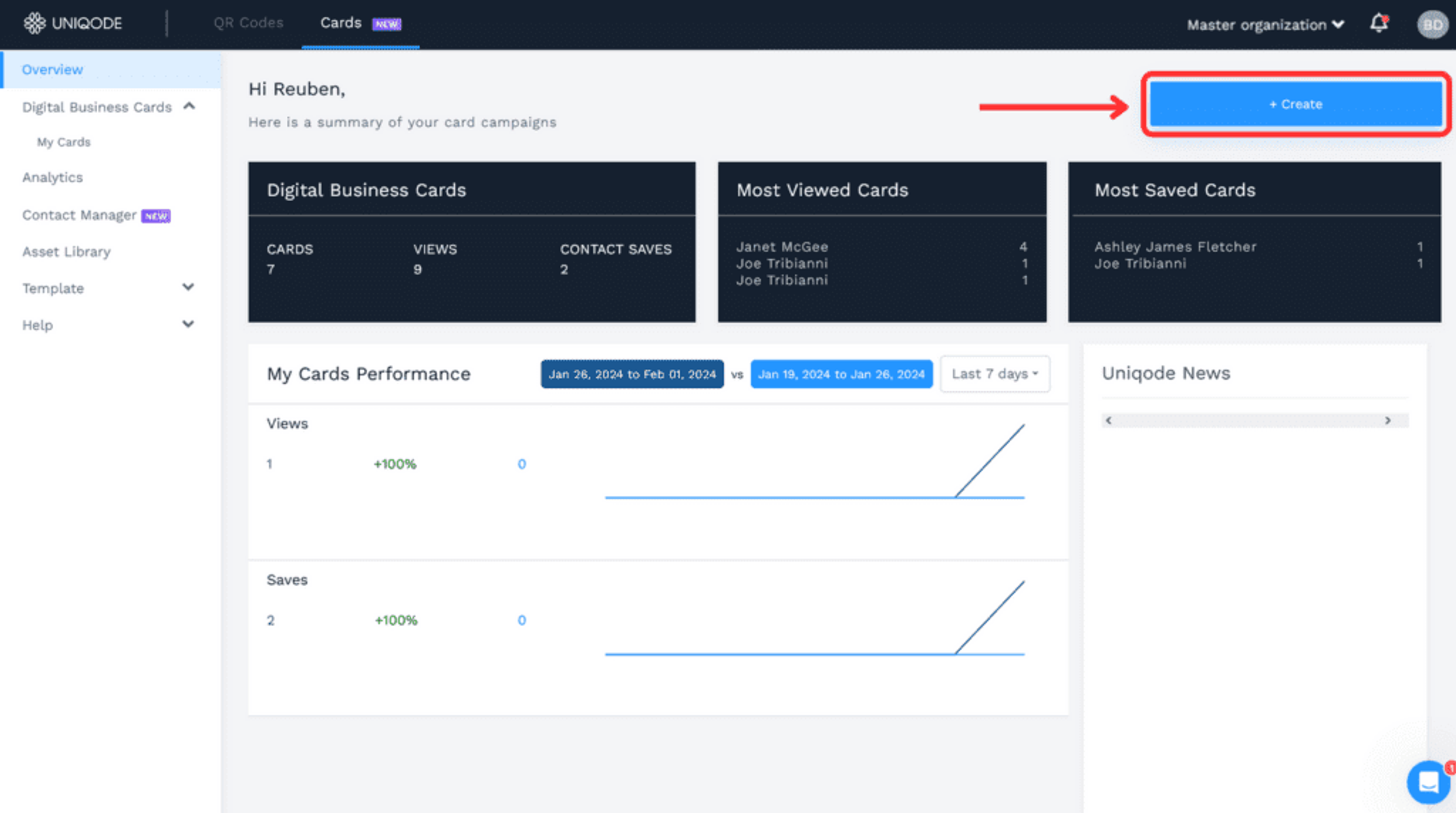 Step 1: Log in to Uniqode and click “+Create”