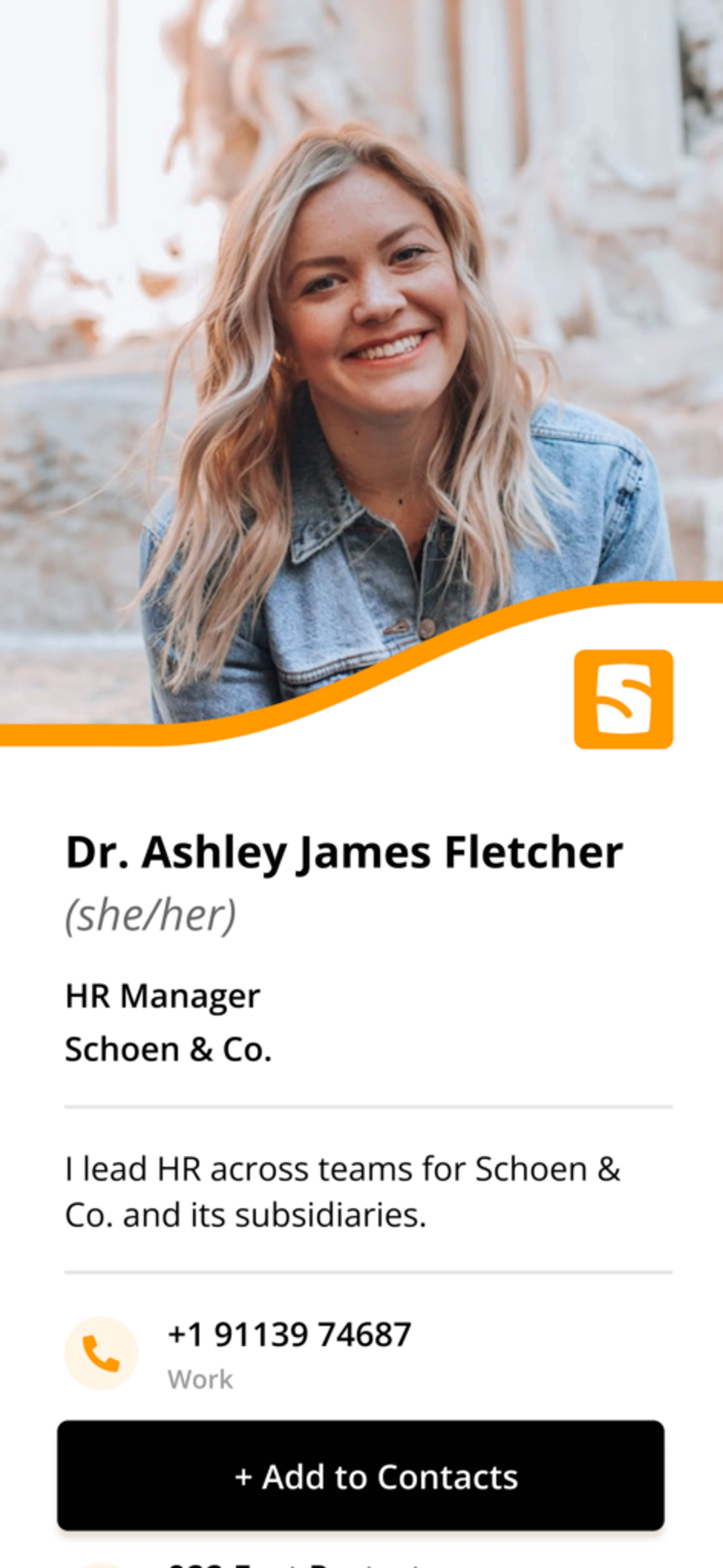 As a recruiter, you can quickly exchange your clickable details (as a link or a QR Code), such as name, photo, role, company, email, and other contact information. Additionally, you can use digital business cards to collect details about promising candidates or interact with fellow recruiters (via two-way contact sharing).