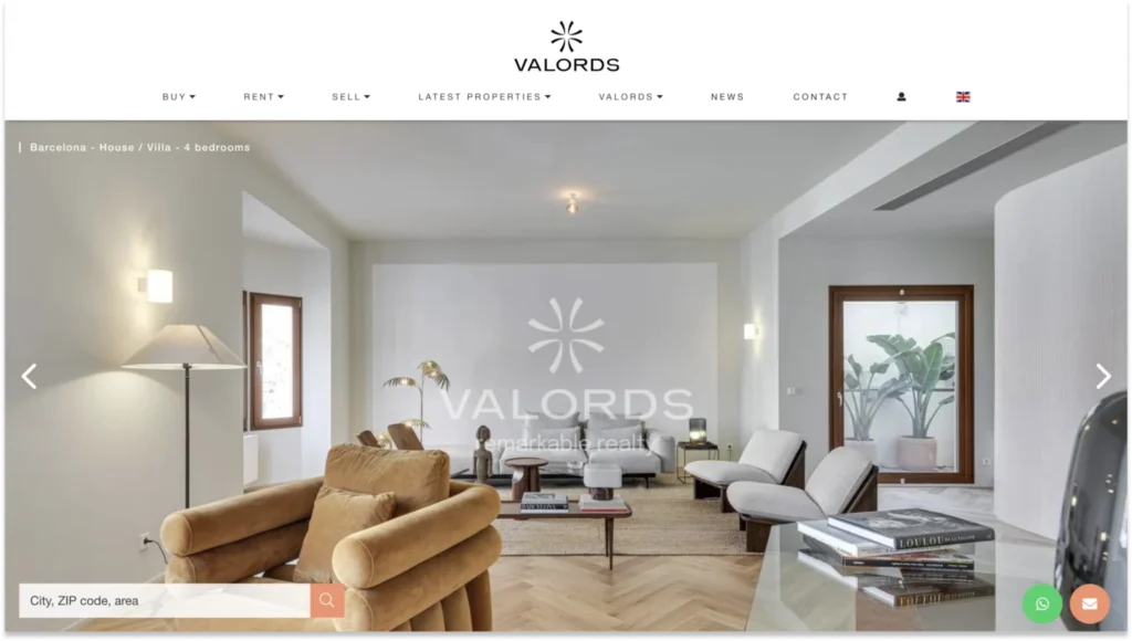 Valords, a real estate agency in Barcelona, has a minimalist, clear menu that enhances user navigation and conversion.