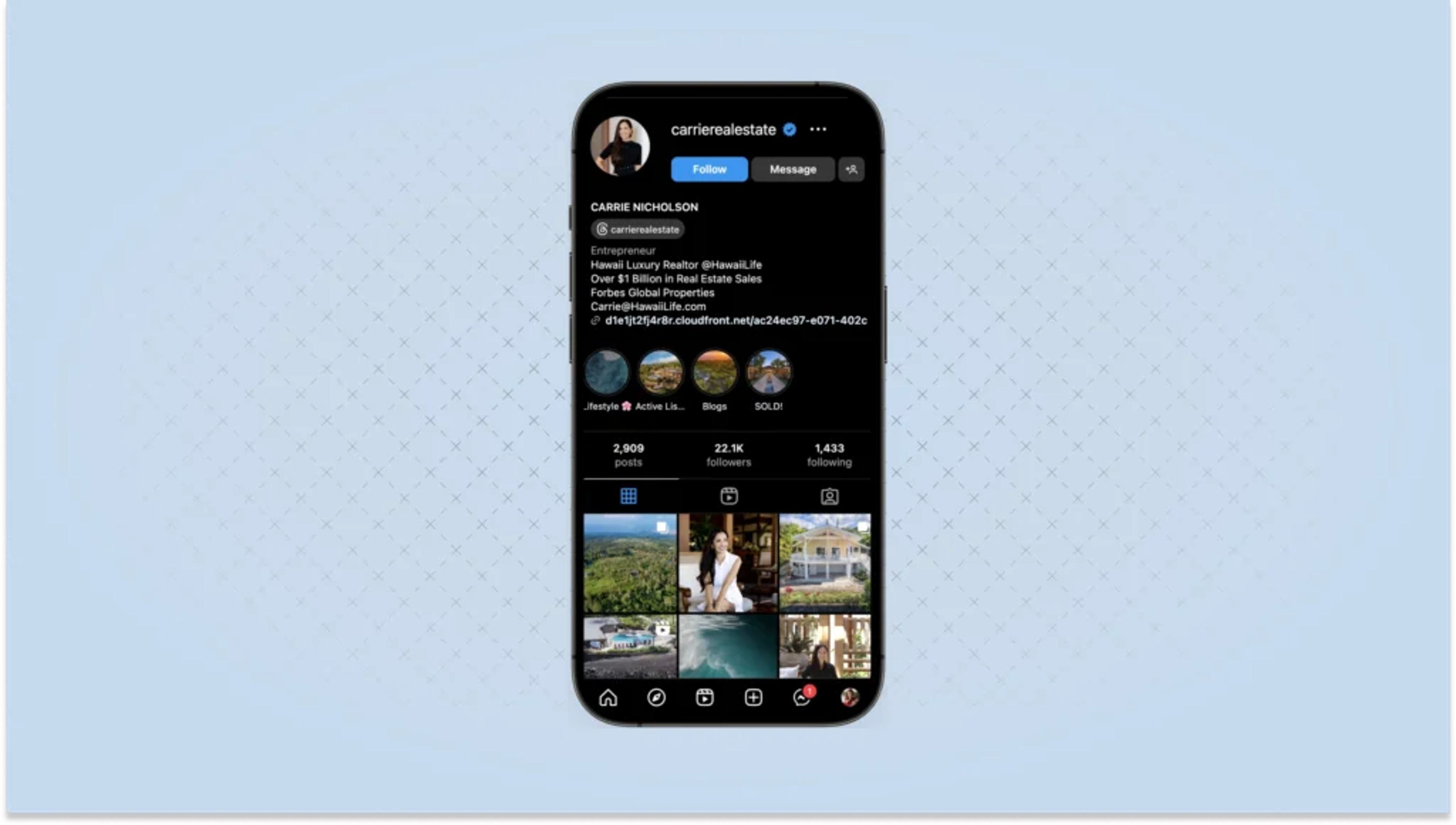 Carrie Nicholson does this beautifully on Instagram. Her feed blends scenic shots of Hawaiian living with real estate updates, making the dream of owning a home in paradise feel tangible. Tools like MeetEdgar can help real estate professionals stay consistent with this kind of content by scheduling and resurfacing evergreen posts, so your personal brand remains visible without requiring daily manual posting.