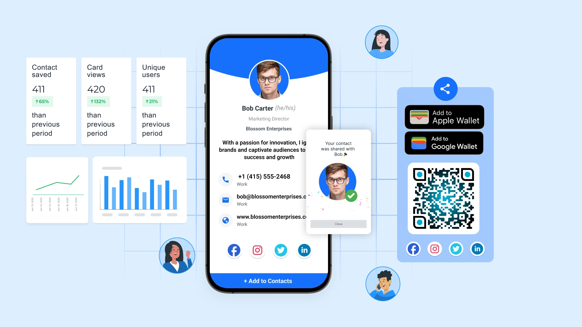 - Use quick touchpoints like instant messaging, QR Code resources, or digital business card follow-ups.
