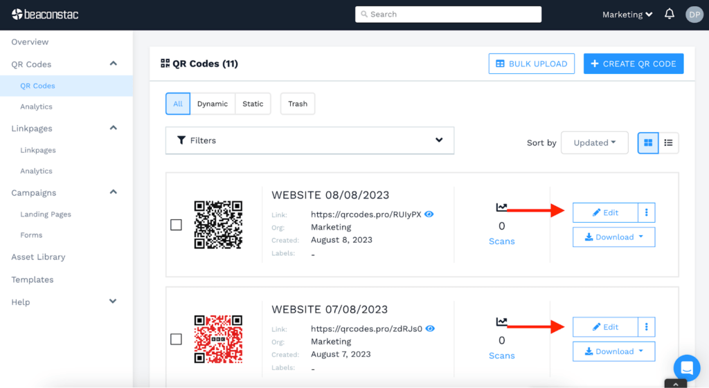 🔥If you’re using Uniqode You can go to the dashboard and update the QR Code URL from the list. The latest content will reflect immediately.