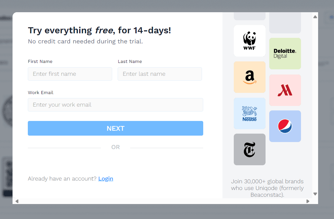 If you do not have an account, sign up on Uniqode to create a dynamic QR Code free for 14 days—no credit required.