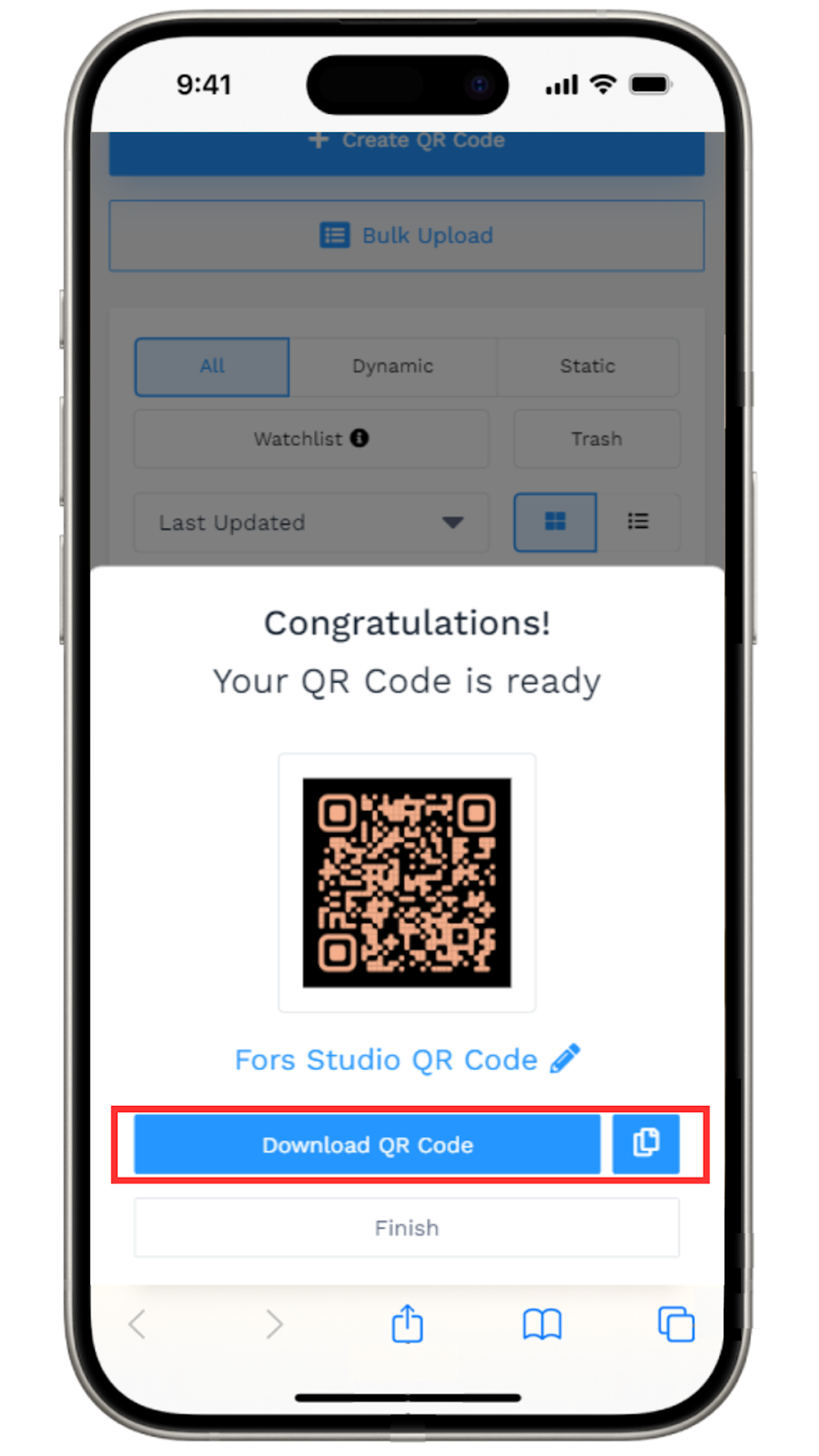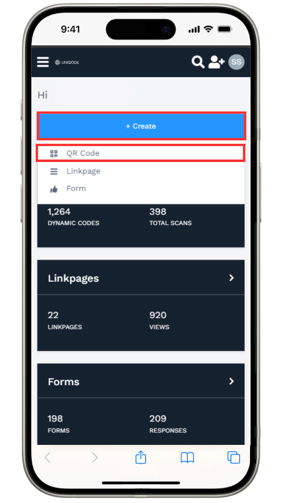 With Uniqode, you can easily create a dynamic QR Code on your iPhone. This QR Code generator works on Safari or a browser of your choice on iOS. With this, you can: