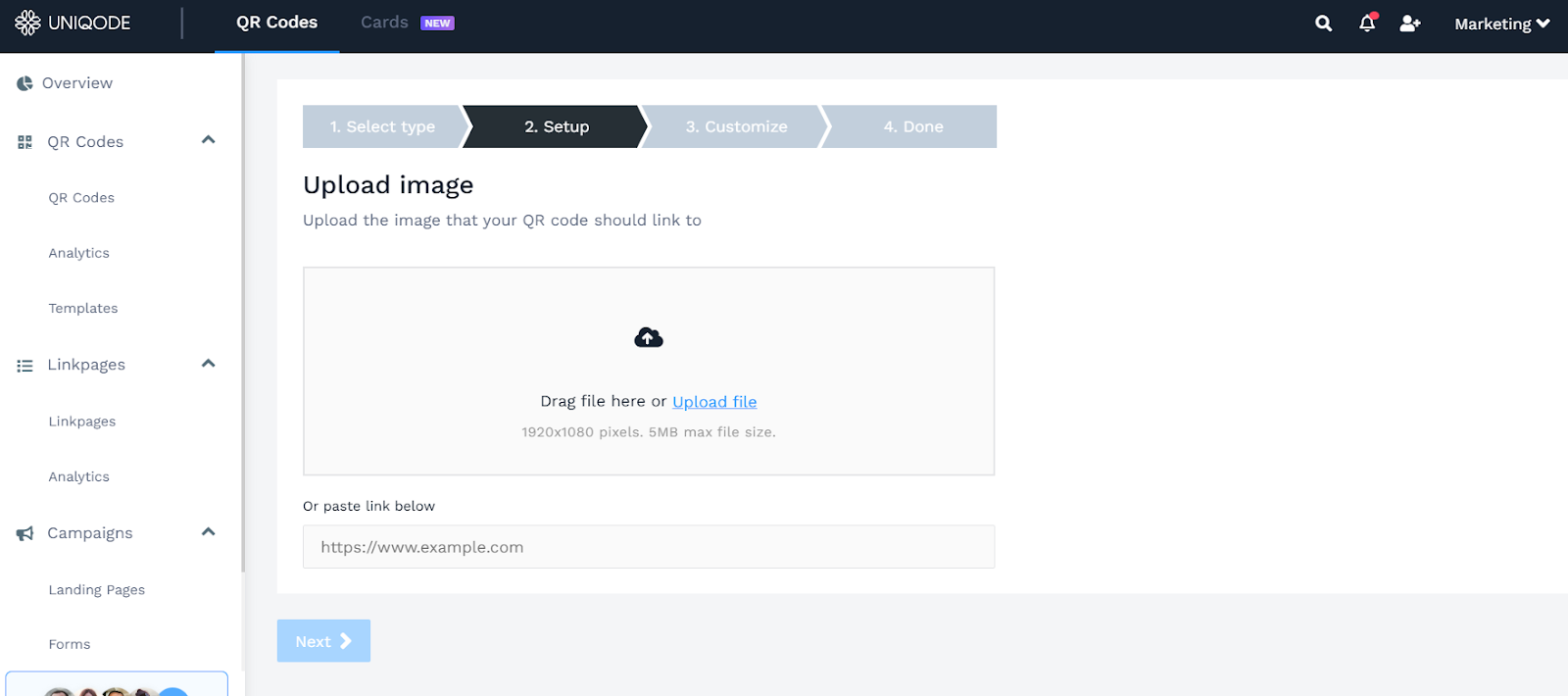 You can easily convert image files—be it JPEGs or PNGs—to QR Codes with Uniqode.