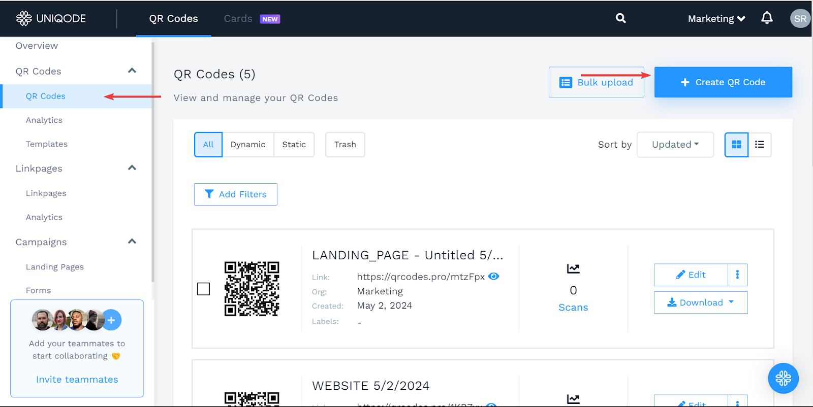 - Need to fix or update the QR Code’s link? Make the change without reprinting.
