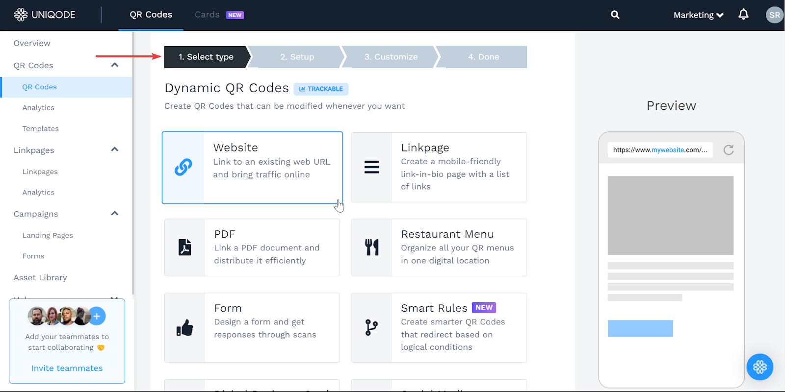Choose a QR Code type as “Website.” This lets you link your Tripadvisor listing’s URL to the QR Code.