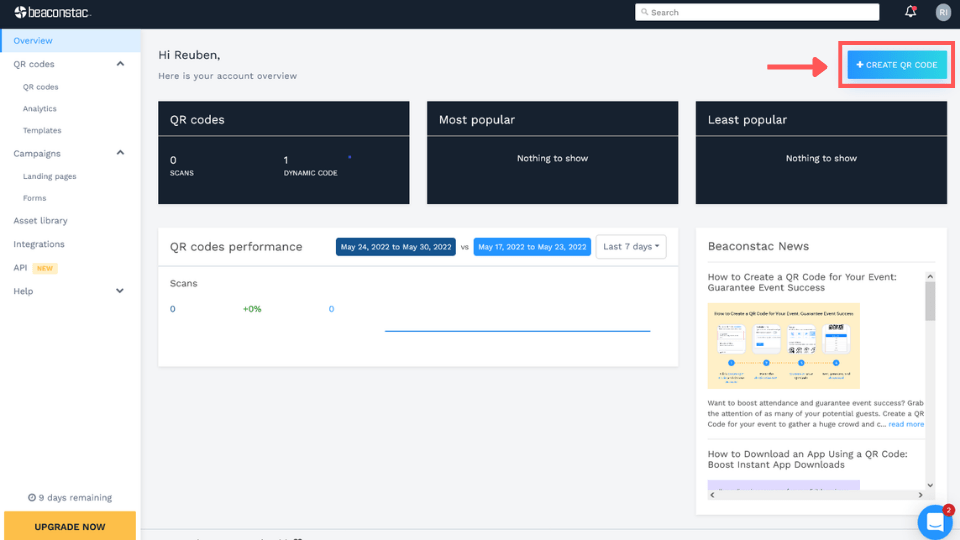 Step 1: Sign up for a free trial on Uniqode and head on to your dashboard.