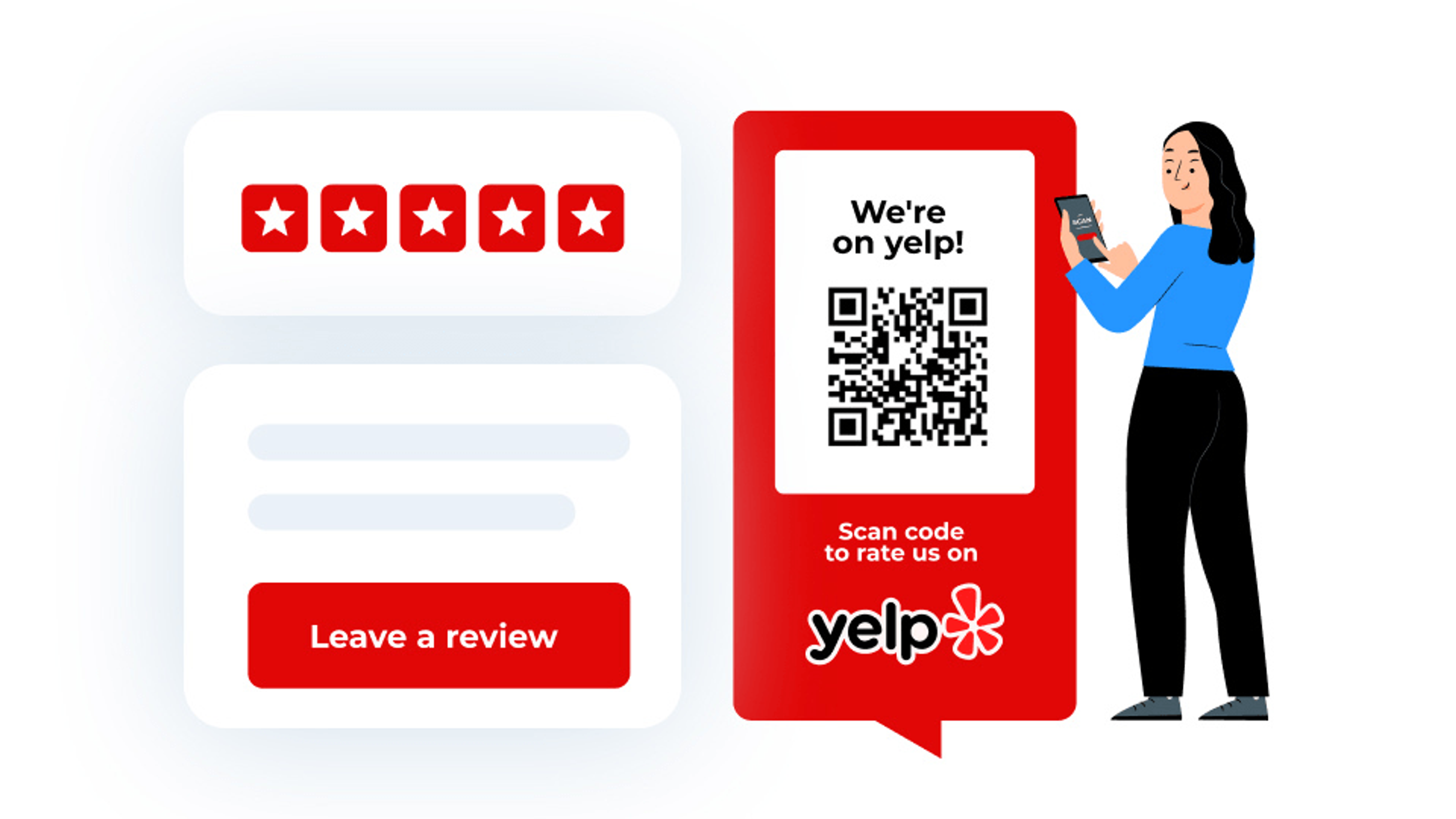 Research finds that every additional star on Yelp corresponds to a 9% increase in revenue. So, it’s a no-brainer that you’d want to get more Yelp reviews for your business. With a Yelp QR Code, your customers can share their reviews with a single scan.