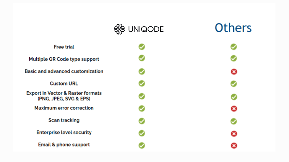 Here is a helpful comparison between Uniqode and other QR Code generators.