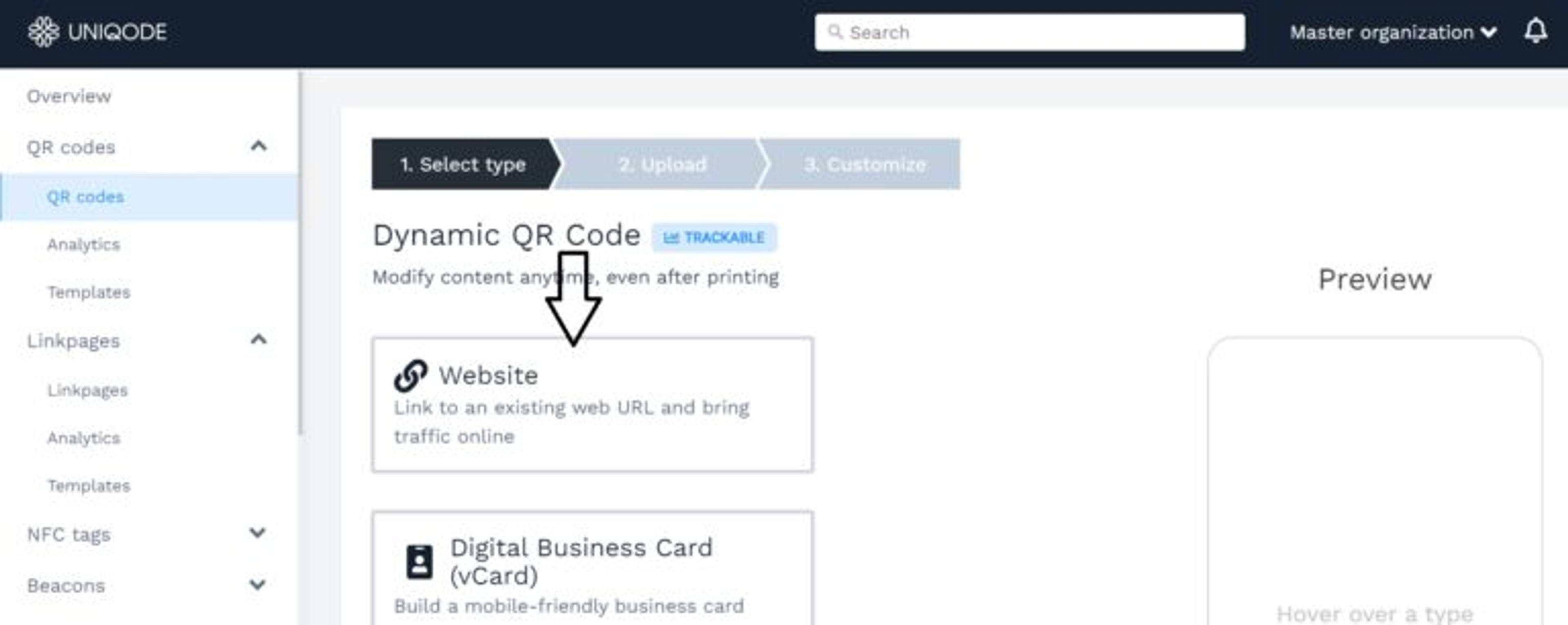 Step 1: Select QR Code Type