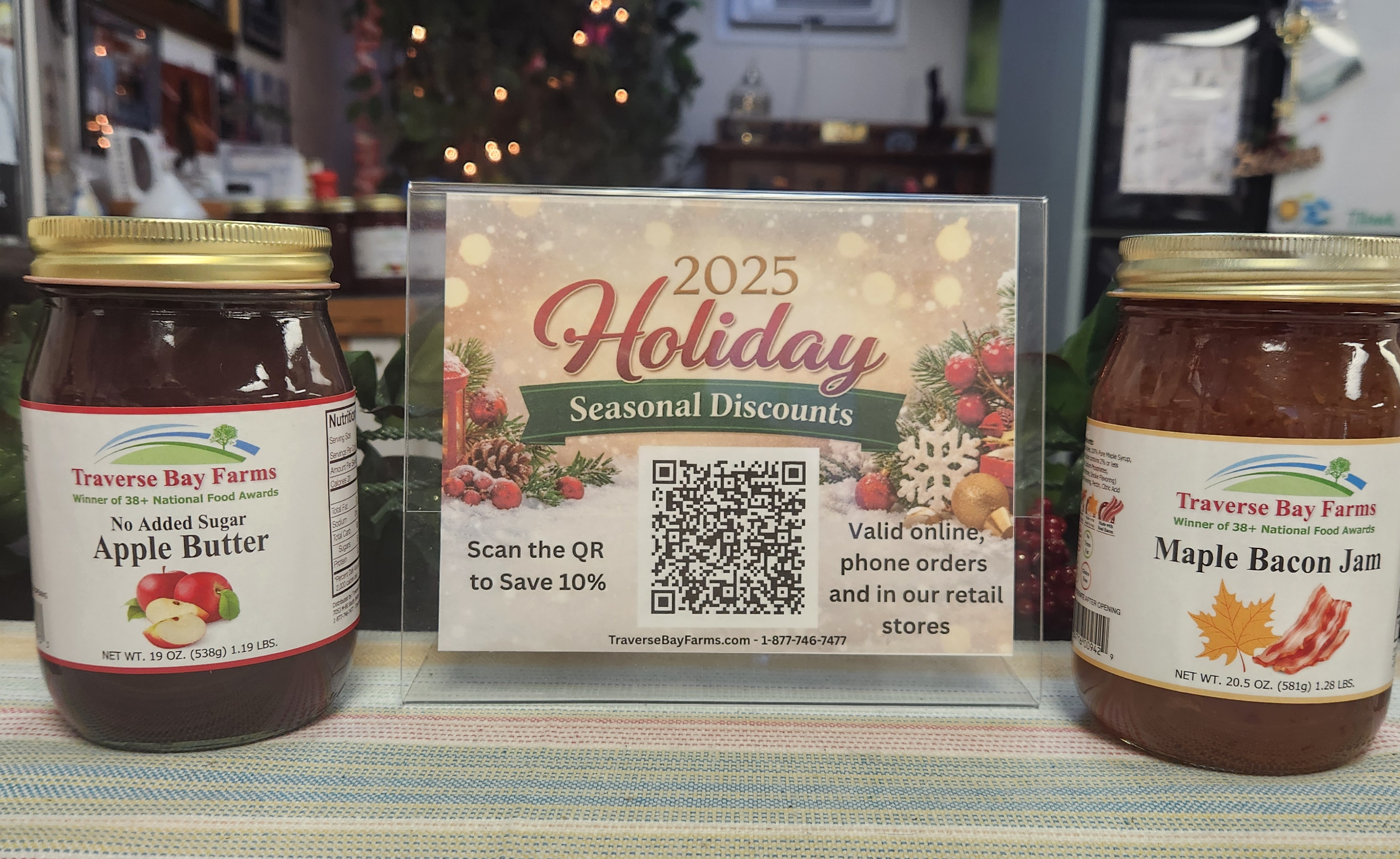 Traverse Bay Farms, an award-winning gourmet food brand, uses QR Codes to promote seasonal discounts. Upon scanning, customers can access a coupon code that saves them 10%. The brand places these QR Codes on retail store place holders as well as on their website.