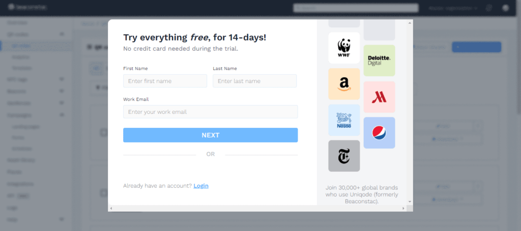 To create custom QR Codes for your spa and salon with logo and brand colors, sign-up for a free trial on Uniqode. No credit card required.