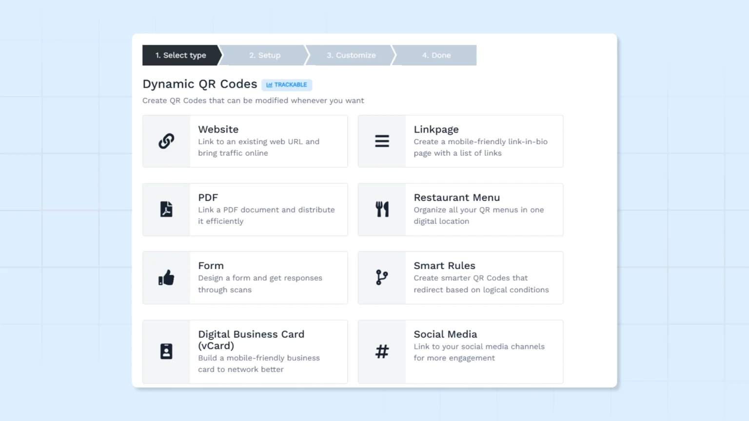 Start by generating unique QR Codes that reveal a random discount or surprise offer for each customer. You can tailor discounts to individual users using Smart Rules to set user scan limits, unique user scans, etc. making the campaign more interactive and fun.
