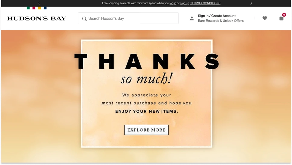 Pro tip: You can also send a follow-up “Thank You” email after a purchase, just like Hudson’s Bay does here. Offer related products or an exclusive discount for your customers’ next purchase, further driving engagement and increasing repeat sales.