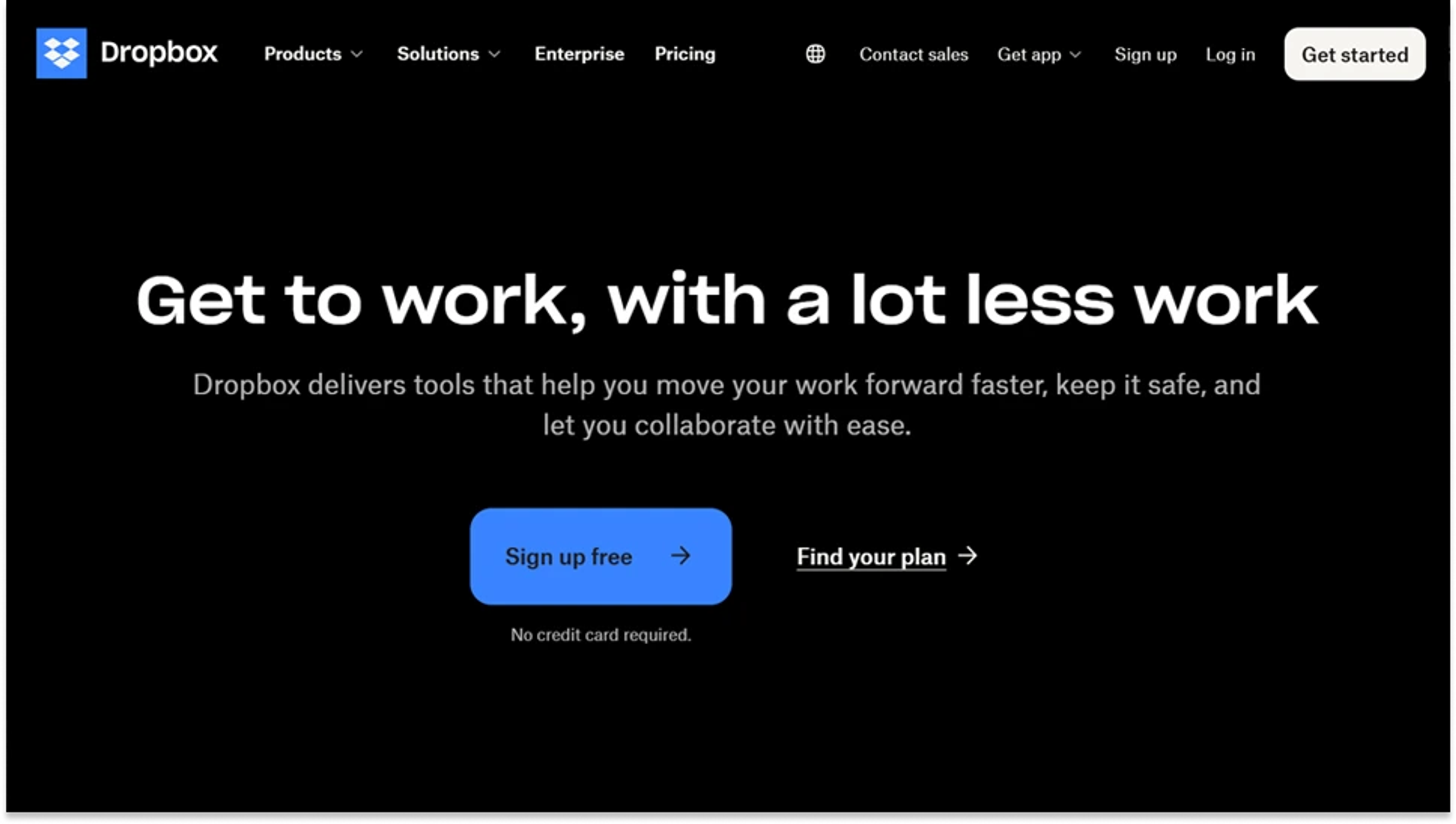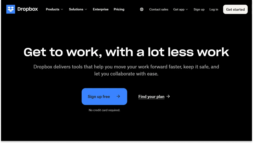 Dropbox does this well by giving users simple choices like “Sign Up for Free” and “Find Your Plan,” making it easy to move from interest to decision.
