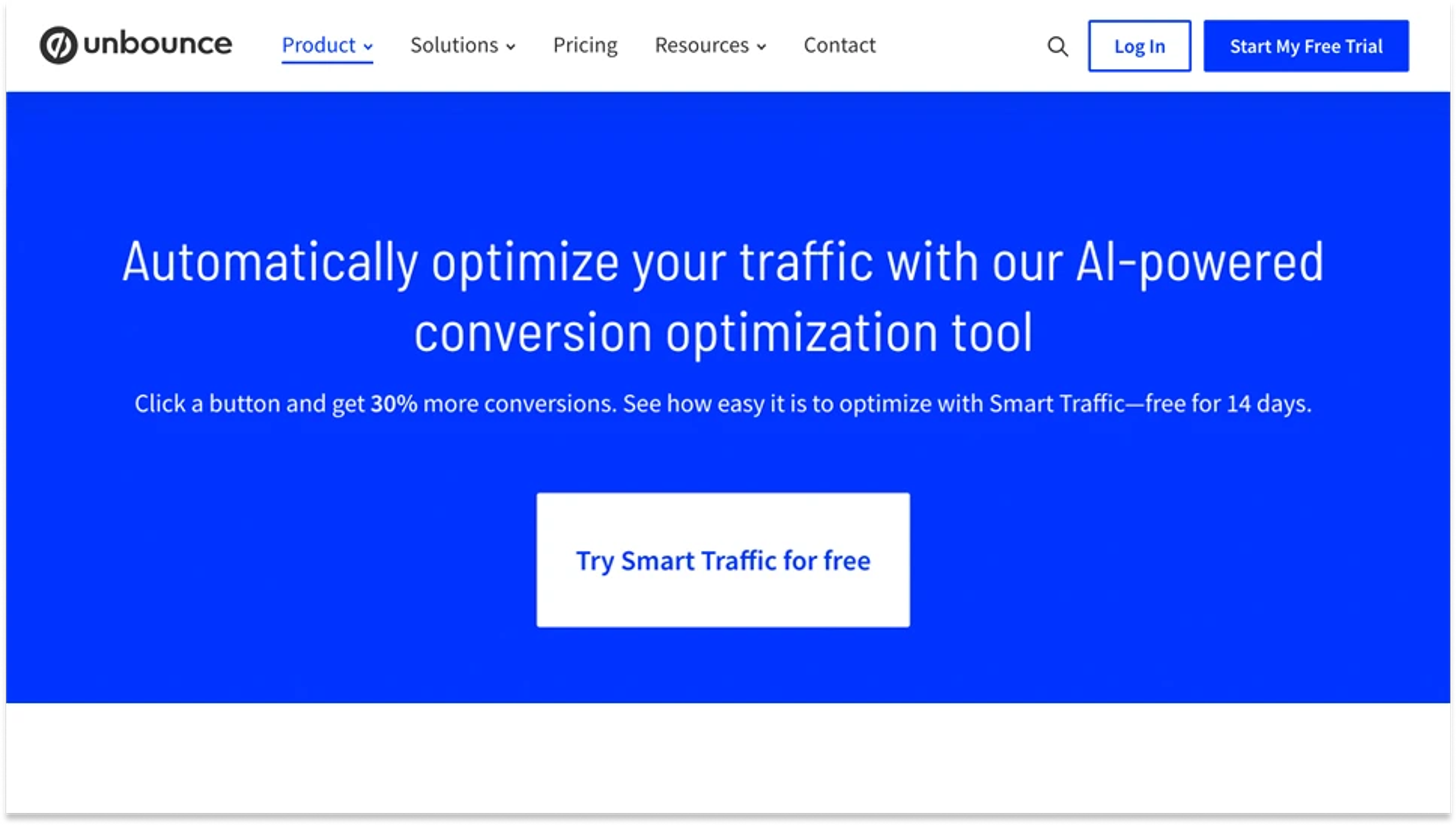 For example, Unbounce uses “Try Smart Traffic for Free,” which clearly states visitors can try something without committing.