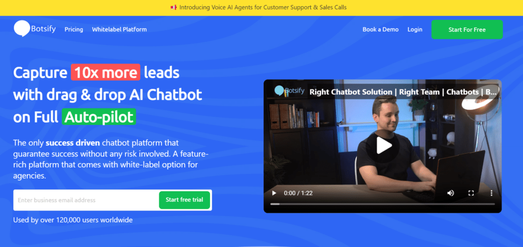 | Botsify | Starts at $49/mo | AI chatbots, Shopify chatbots, Voice AI, Lead Generation Conversational Form | Lead generation through automated chatbots |