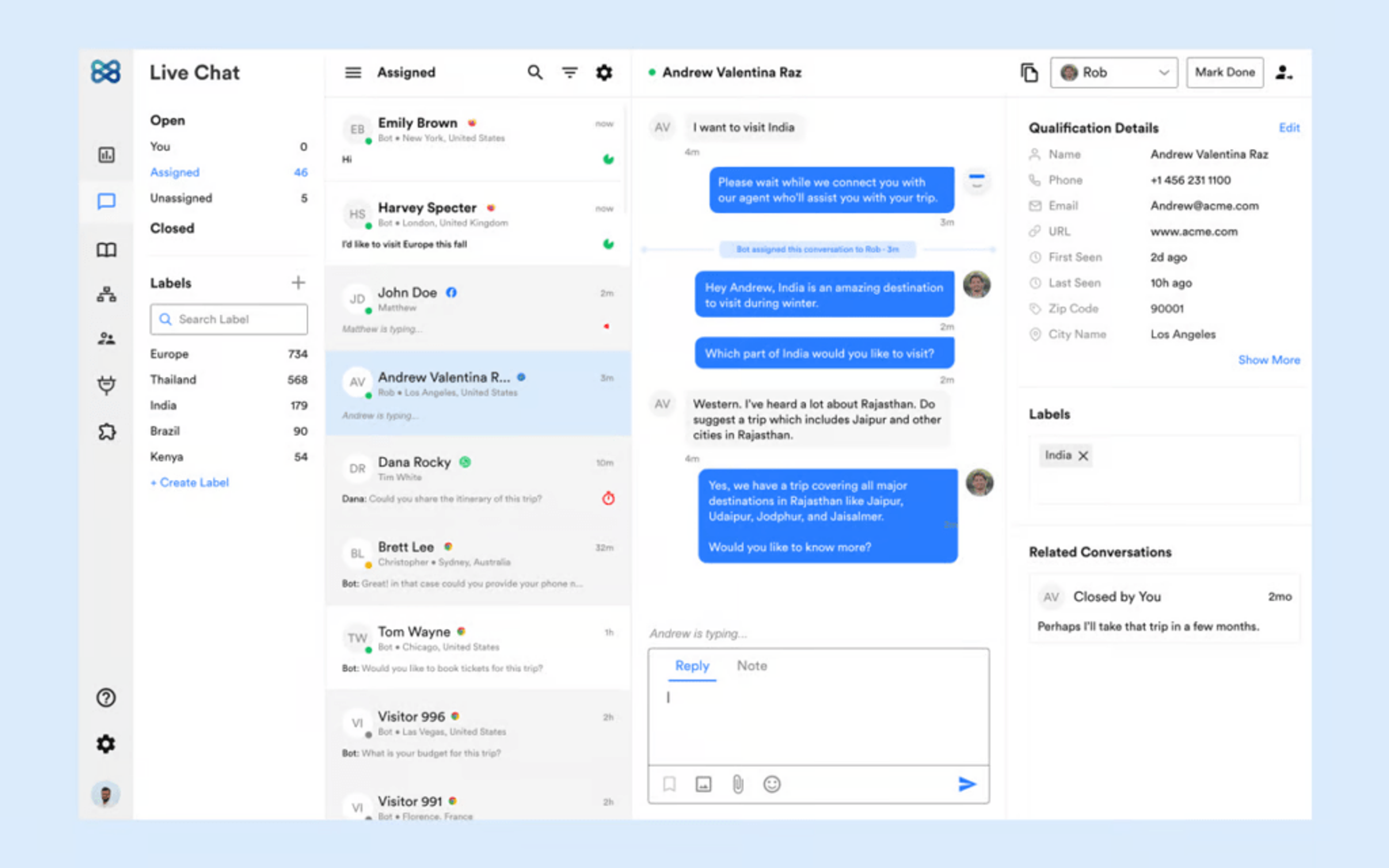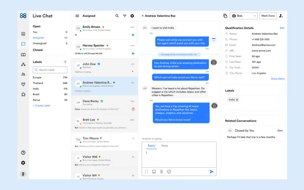 - Tag leads, prioritize urgent conversations, and track resolution status.