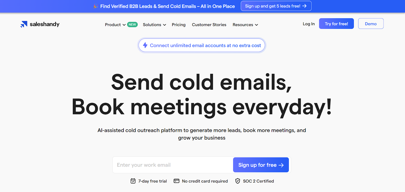 | Saleshandy | Starts at $25/mo | Unlimited email accounts + warm-up included (even on the base plan) | Scalable, AI-Powered Cold Email Campaigns |