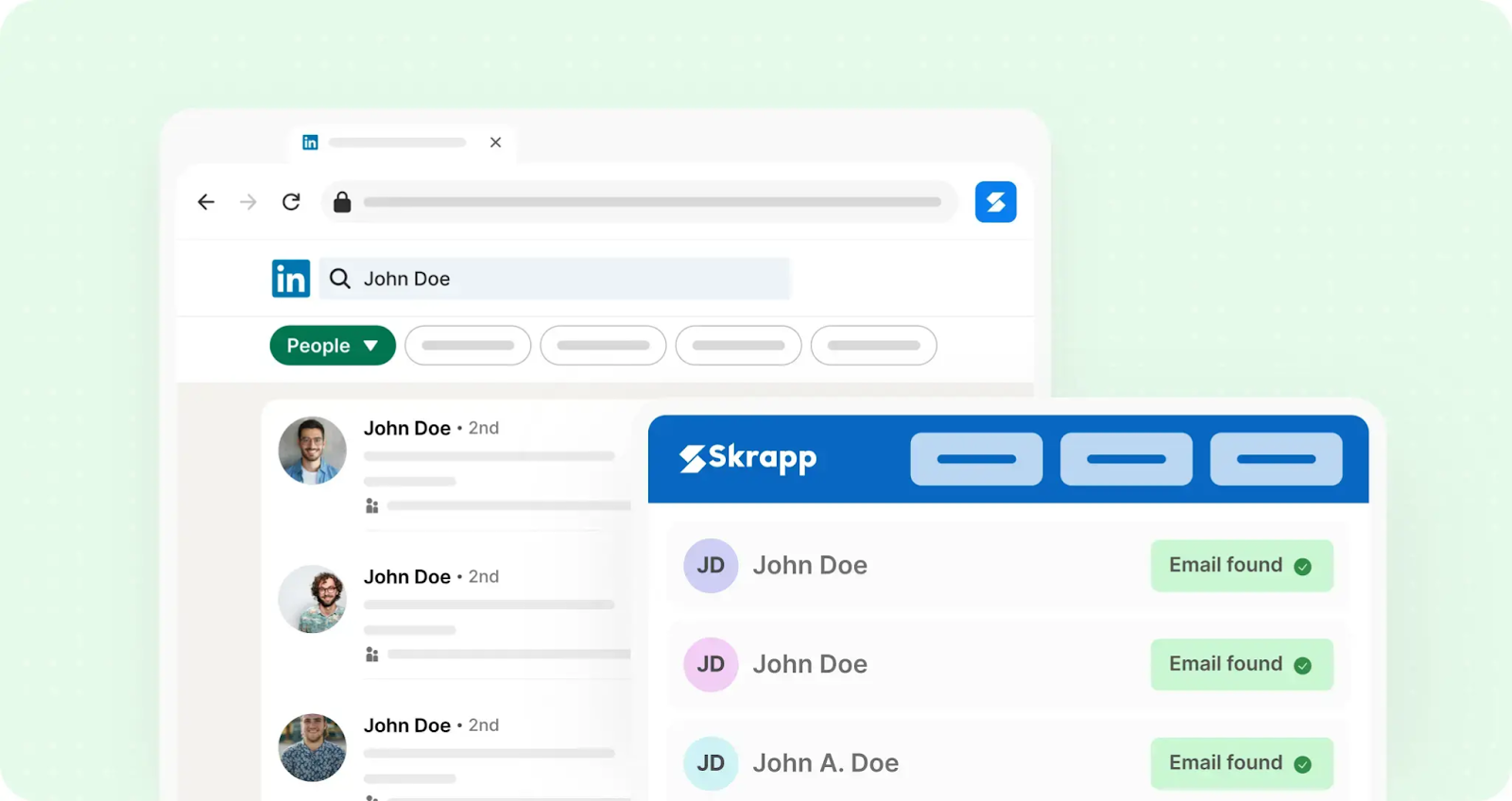 | Skrapp | Free plan with limited features and then $49/month | Domain search, bulk email finder, and browser extension for LinkedIn for finding email addresses | Finding and verifying email addresses |