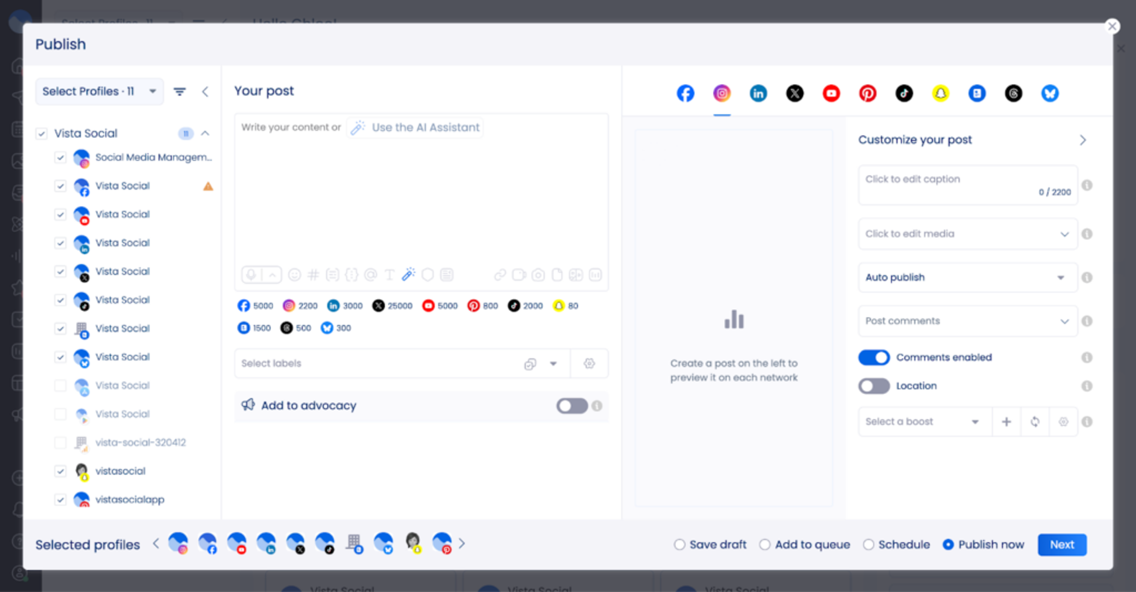 Vista Social: best for AI-powered social media management