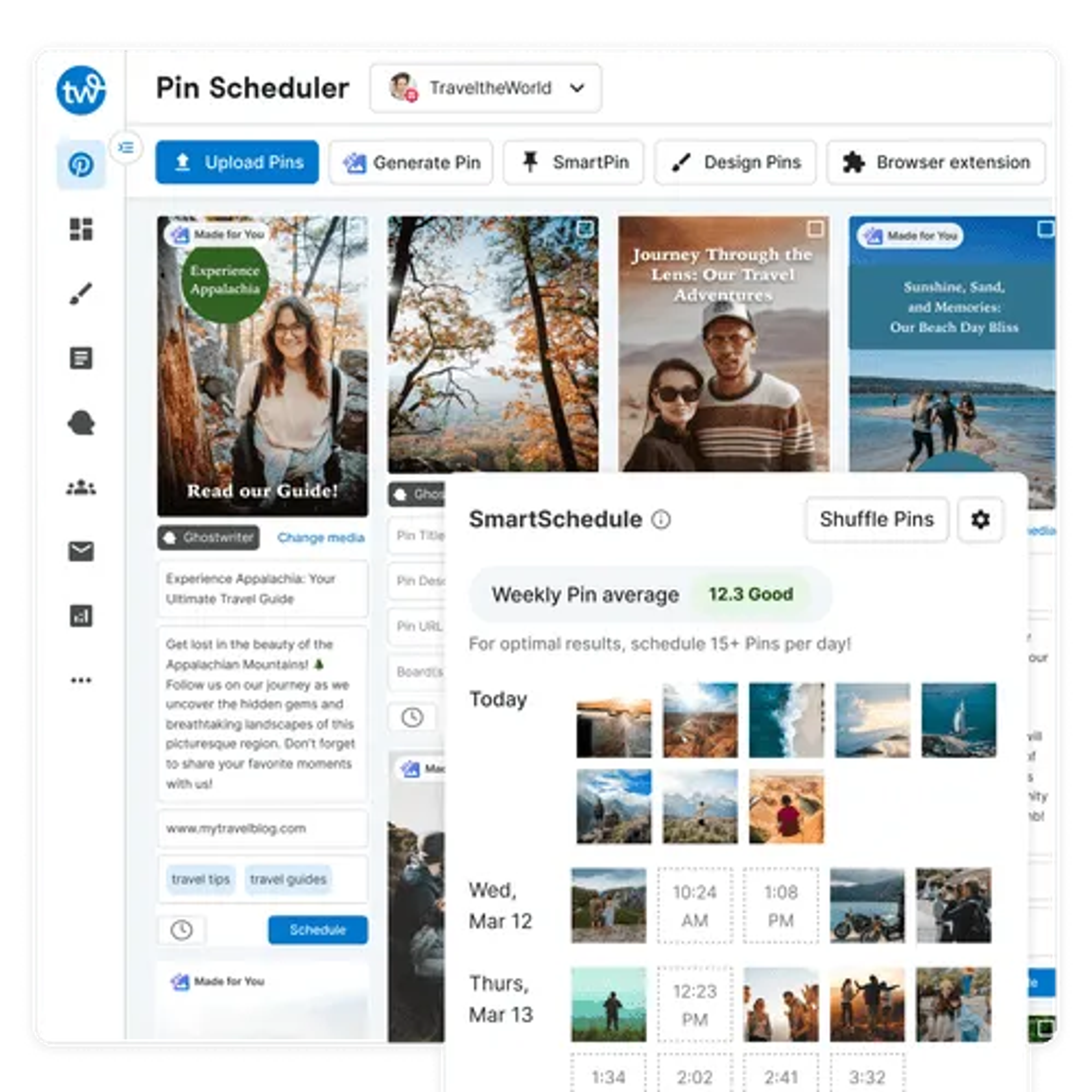 With Tailwind, you can design and schedule your Pins in minutes, not hours. Intelligent automation makes your life easier and smart scheduling keeps your Pinterest marketing consistent and effective. Baked in best practices mean that you get better results with fewer headaches.