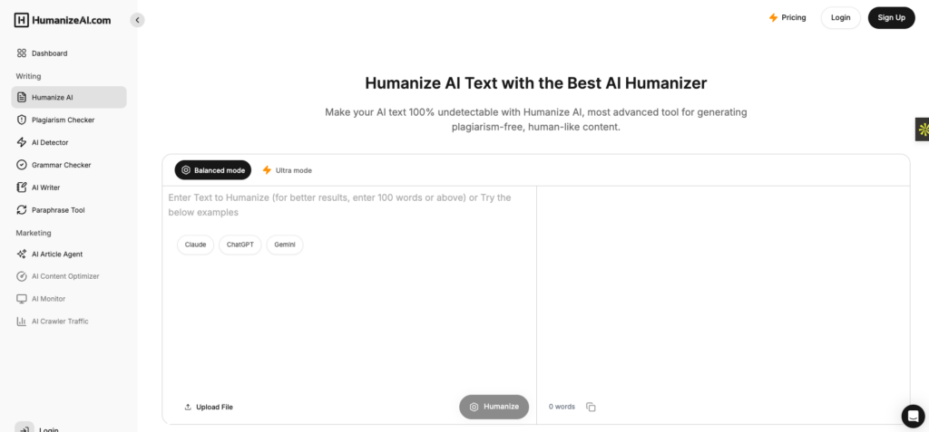 | Humanize AI | Monthly plans range from $14 to $99. | Sounds genuinely human | Best for SEO optimized, humanized content |