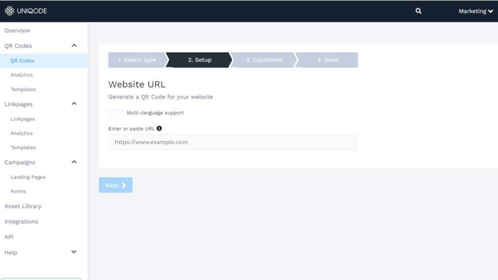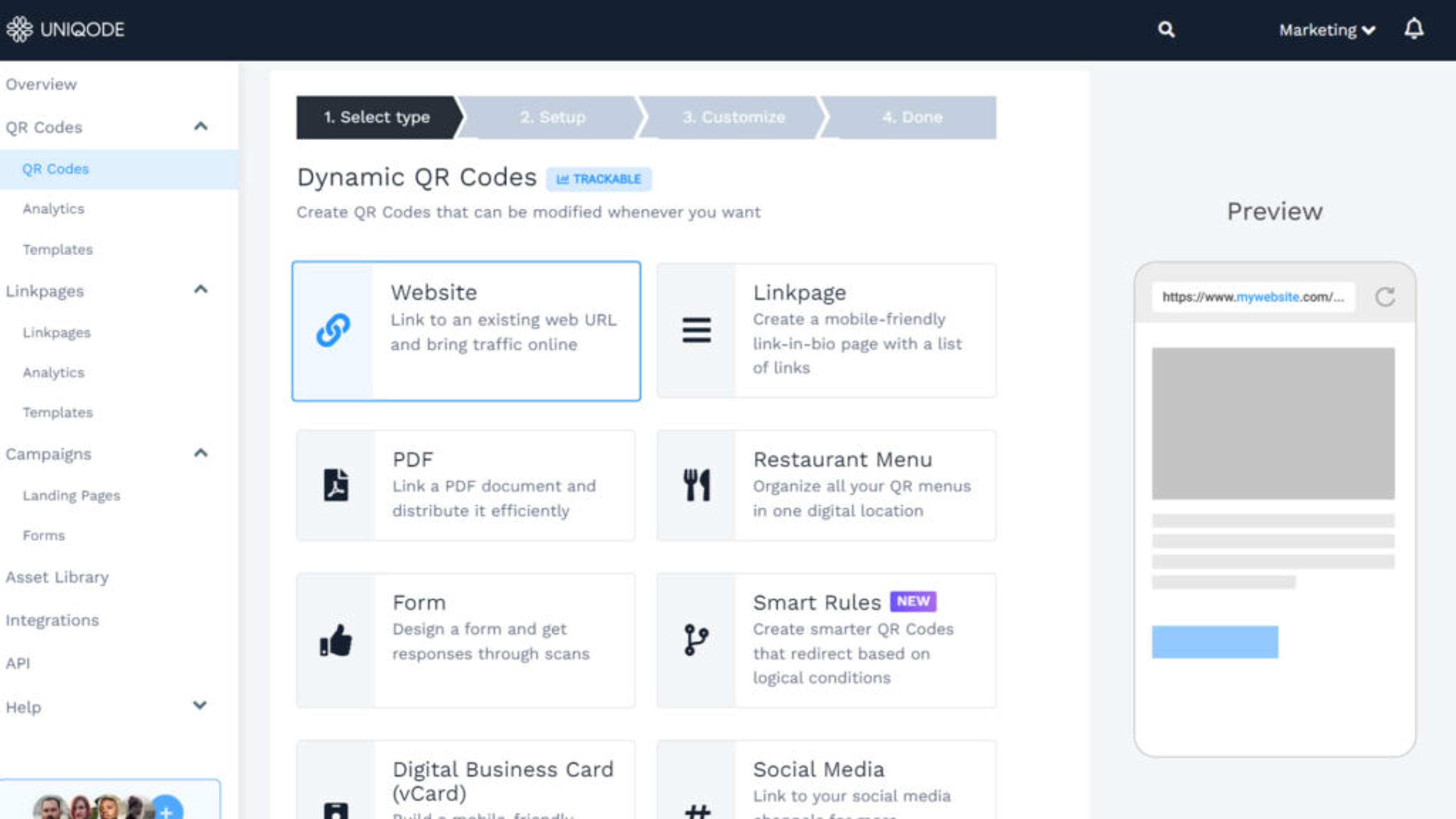 Step 2: Select a QR Code type
