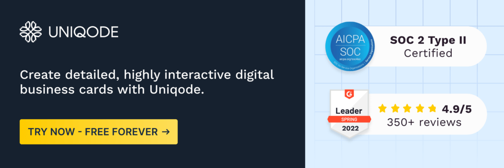 Uniqode lets you access the above capabilities, along with other significant digital business card benefits—without downloading any software application.
