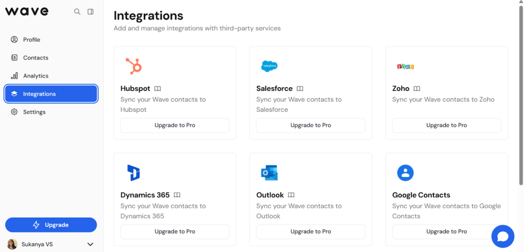 Wave Connect provides physical NFC-enabled cards in multiple materials including PVC, metal, and wood, even on their free plans. These NFC cards enable instant lead capture through built-in forms that automatically sync contacts into CRMs, combining the convenience of tap-to-share technology with digital card functionality. Wave Connect also maintains SOC 2 Type II compliance and GDPR-aligned practices for secure data handling.