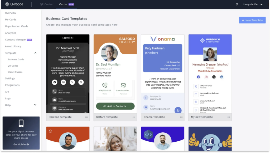 Uniqode’s digital business card solution at a glance: