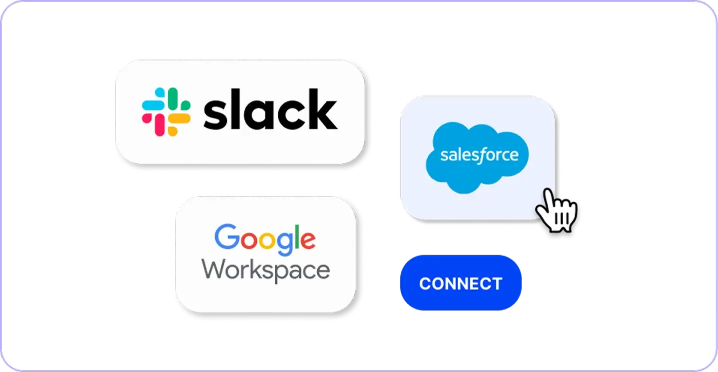 Select the tool your team already uses, like Salesforce, Google Workspace, or Slack.
