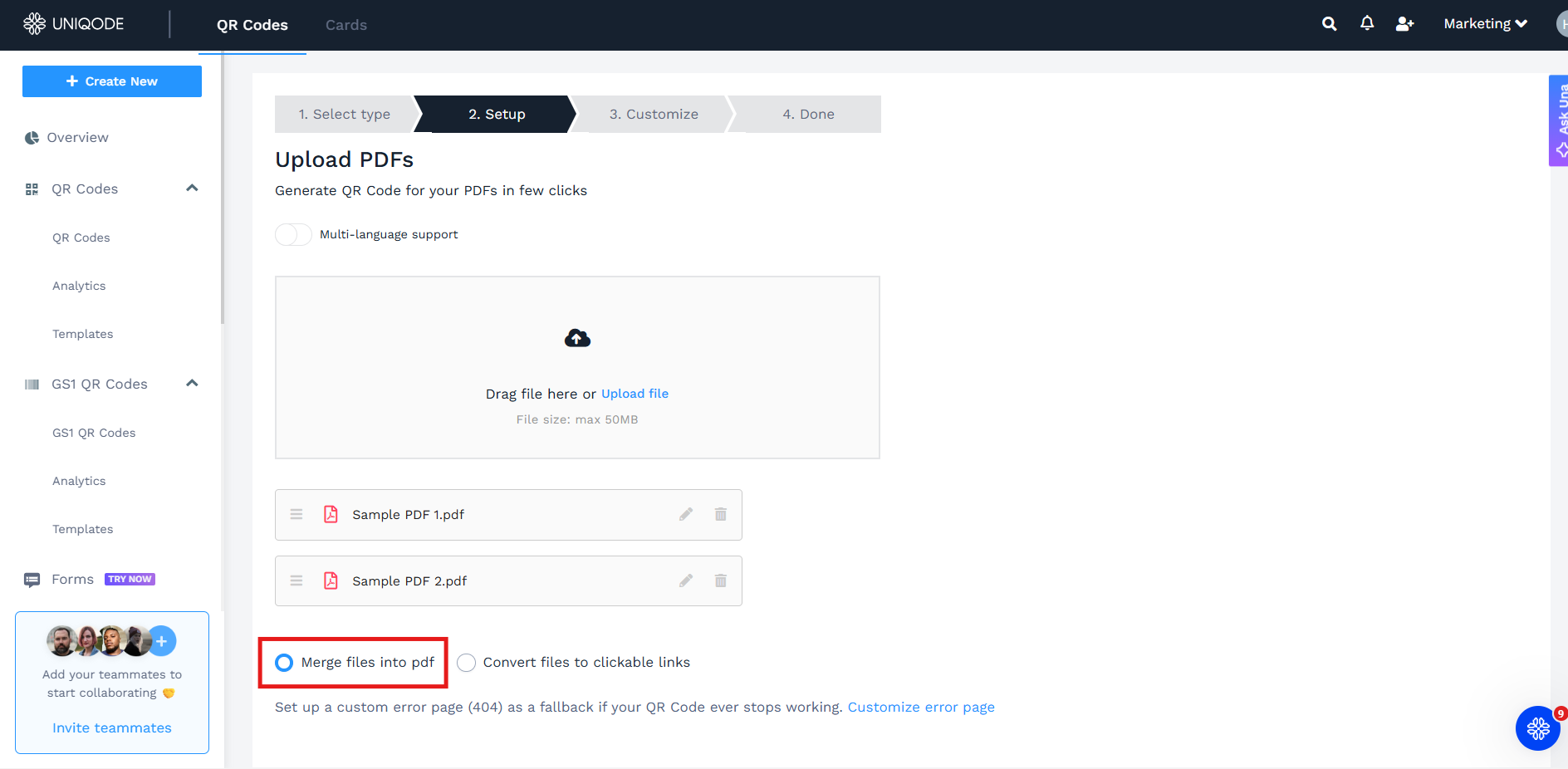 Open Uniqode's portal, and create your PDF QR Code with this link. The workflow remains the same.